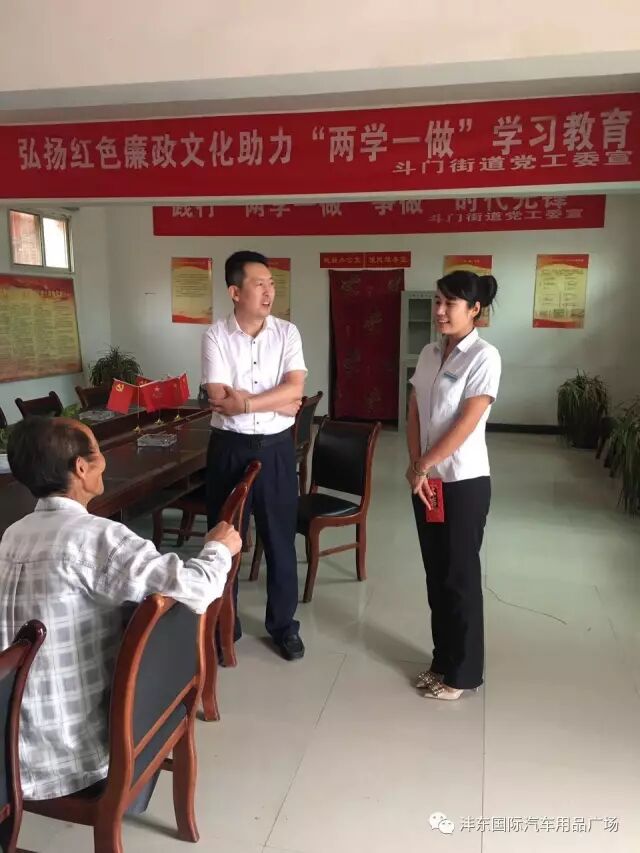 沣东国际汽车用品广场商管部崔丽芳主管和沣东工商局刘局长正在和我们贫困家庭杨叔叔在交流中,公司代表为他送去问候和精神慰藉,并与杨叔叔亲切地聊天,了解他们的日常生活,身体状况:
